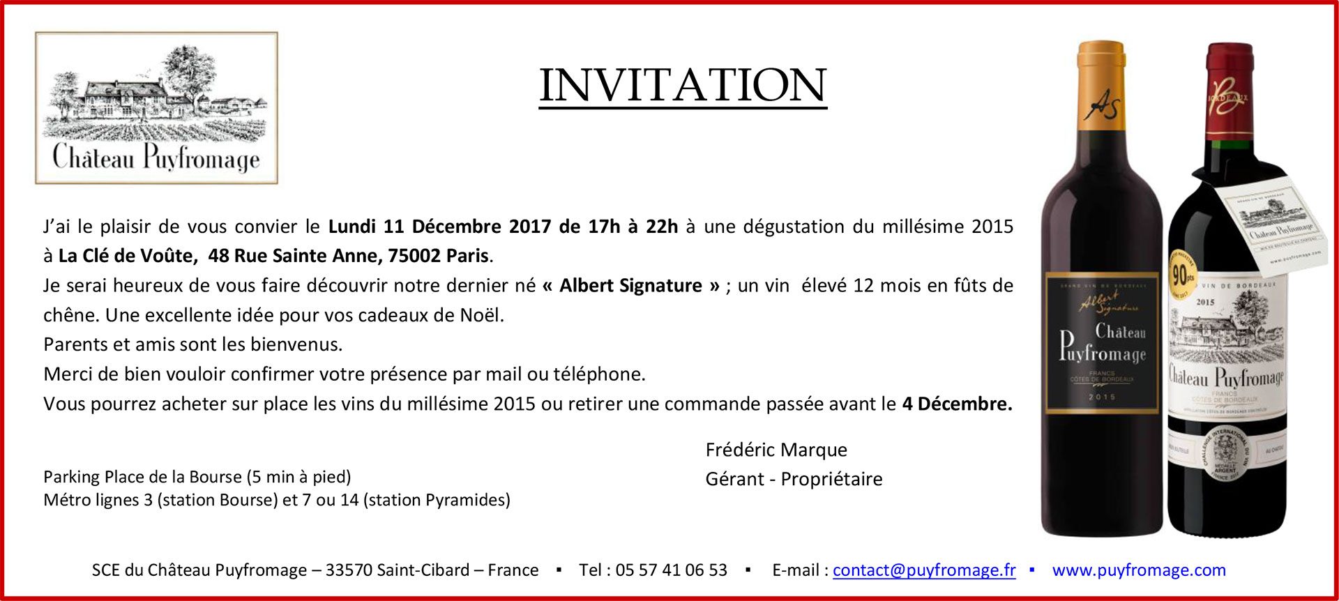Dégustation Paris le 11 décembre - Château Puyfromage