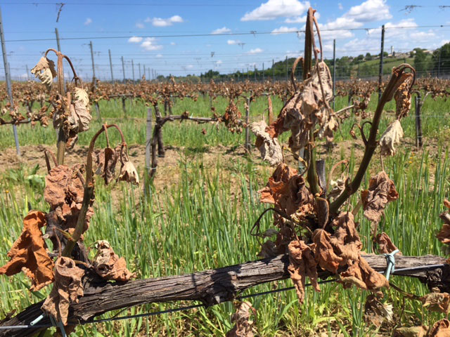 Le spectacle de nos vignes « grillées » est absolument désolant.
